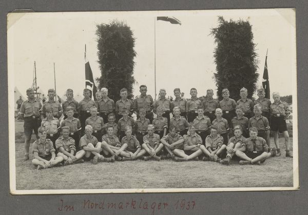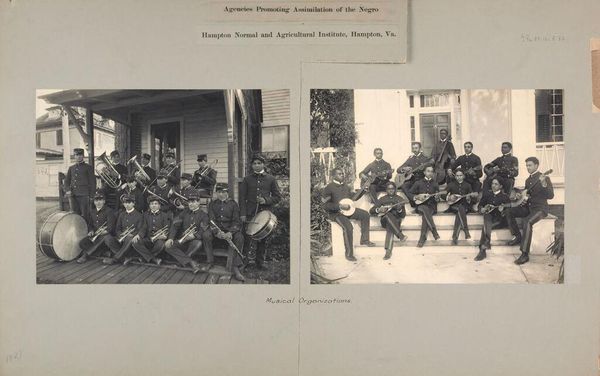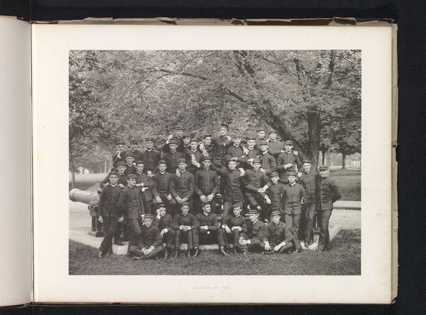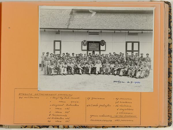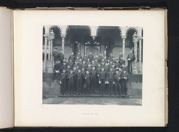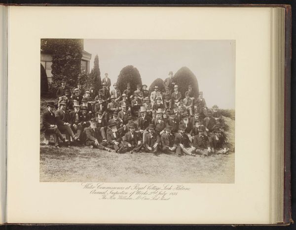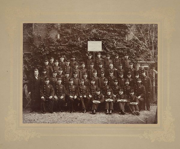 This photograph, taken by the Ordnance Survey Office, presents us with a study in tonal values and rigid structure. Notice the composition: the subjects are arranged in neat rows, creating a grid-like pattern that emphasizes order and hierarchy. The monochrome palette further reinforces this sense of uniformity, reducing individual expression to a play of light and shadow. The sharp contrast between the dark uniforms and the bright background flattens the image, abstracting the figures into geometric shapes. Look at how the lines of the building in the background mirror the lines of the officers' formation, creating a visual echo that suggests a world governed by strict rules. The photograph can be seen as a semiotic system, where each element is a signifier of military discipline and imperial power. It's a testament to the artist's use of form to communicate a larger cultural narrative.