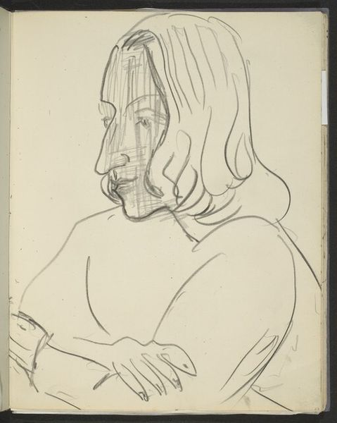 Editor: So, this drawing is "Man met neergeslagen ogen," or "Man with Downcast Eyes," by Jan Adam Kruseman, dating from about 1843 to 1864. It’s a pencil drawing. I'm immediately struck by its rawness, the sketchiness, but also the overwhelming feeling of sadness. What do you see in this piece? Curator: The downcast gaze immediately draws me to consider themes of introspection, perhaps even shame or remorse. Throughout history, lowered eyes have often symbolized humility or submission. Is he hiding from something, or perhaps contemplating something deeply personal? Notice how the artist hasn't fully defined the face. This lack of clarity allows viewers to project their own interpretations of sorrow and the burden of cultural memory onto the subject. Editor: That's interesting, the idea of projecting onto the subject. It does feel very open-ended, not definitive. Curator: Exactly. The unfinished quality enhances that sense of ambiguity. Think about the cultural expectations around male stoicism during that period. Could this drawing be hinting at the emotional cost of suppressing vulnerability? Does this act as an acknowledgement of the historical, social constraints imposed upon individuals? Editor: I never considered it in that context. I was mostly thinking of the personal, internal feeling, but you’re right. It becomes almost a symbol of suppressed emotion. Curator: Precisely. And by presenting the symbol without explicit context, Kruseman invites us to reflect on how cultural forces shape individual experiences, both then and now. Editor: That’s really shifted how I see it. Thanks! Curator: My pleasure!