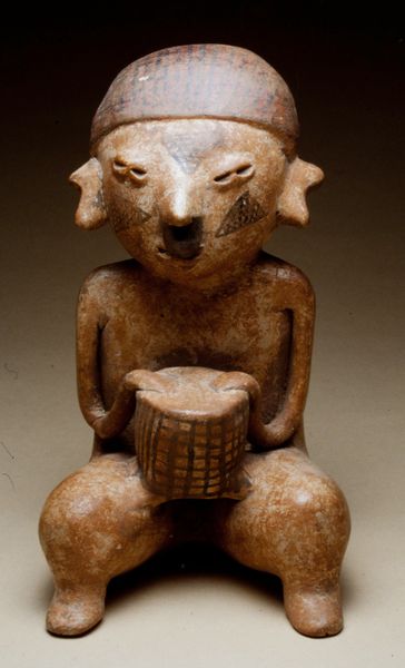 The Casas Grandes people created this ceramic bear effigy pot with painted slip, but we do not know when. These kinds of vessels often served ritual or ceremonial purposes and would have been indispensable in daily life. The figure has a full belly, a snout, and a wide-open expression. This bear sits with its front paws resting on its legs as if observing us. The red and black geometric patterns painted onto the figure may be more than decoration. These visual elements might signify the bear’s spirit and its connection with the cosmos. Bears are powerful symbols in many cultures; they stand for strength, healing, introspection, and connection with the earth. Here, the artist may have tried to embody the spirit of the bear, offering a tangible link to both the natural and supernatural realms. This pot reminds us of the deep connection that people have had with the natural world for millennia.