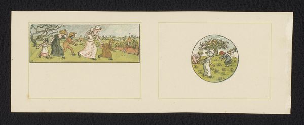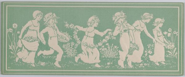 This is a Valentine card by Kate Greenaway, an English artist celebrated for her children's book illustrations, probably made in the 1880s. The image presents five young girls, adorned with roses, participating in a dance within a grassy field. Greenaway's work often romanticized childhood, reflecting a nostalgia prevalent in Victorian England, where rapid industrialization led to a longing for simpler, pastoral times. The girls' clothing suggests a middle-class upbringing, their delicate features in line with the era's aesthetic ideals. Valentine cards became increasingly popular during this period due to advances in printing technology, making them more accessible and affordable. Greenaway's designs contributed to the commodification of childhood, as her images were widely reproduced on various consumer goods. To fully appreciate Greenaway's work, one might explore Victorian social history, examining the changing perceptions of childhood and the burgeoning market for children's literature and related merchandise. Such research reveals how art both reflects and shapes cultural values.