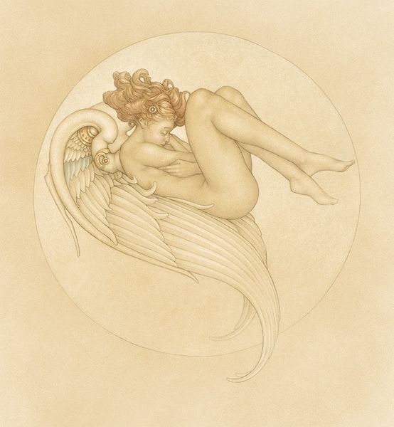 Edward Burne-Jones created "The Heart of the Lotus" with colored chalks on paper, a medium well suited to the ethereal quality of the image. It presents a sleeping woman cradled within the petals of a giant lotus flower. Burne-Jones, a prominent figure in the British Aesthetic movement of the late 19th century, was deeply influenced by the Pre-Raphaelites, who rejected the industrial age in favor of medieval, romantic subjects. Works like this one reflect the broader cultural context of Victorian England, a time of rapid social change and burgeoning interest in spiritualism and the occult. The lotus flower itself, drawn from Eastern religions, suggests a fascination with alternative spiritual paths, but also evokes the traditional, gendered motif of the 'sleeping beauty'. Art history provides the tools to understand this piece. By exploring the artist's life, his relationship to the Pre-Raphaelite Brotherhood, and the social conditions that shaped his artistic vision, we can appreciate how "The Heart of the Lotus" both reflected and challenged the norms of its time.