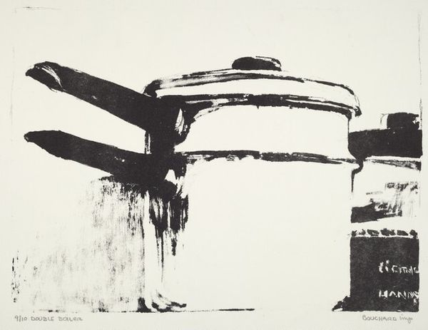 Curator: Josef Herman’s lithograph, "The Cart", immediately strikes one with its stark simplicity. The dark inks create such a dramatic tonal scale. Editor: There’s a certain rawness to the textures created by the lithographic process here, isn’t there? It speaks to the labor involved in the image itself, and perhaps also in the subject's daily toil. Curator: Precisely. The composition is deceptively sophisticated, the artist used the empty space as counterpoint to the solid blacks of the figures. Editor: I am very intrigued by this—how it connects to the role of the printmaker within the art world and the hierarchies inherent in artistic production. Curator: It's a work where form and content are inextricably linked, isn't it? Editor: Absolutely, revealing layers of both aesthetic and social meaning.