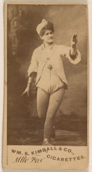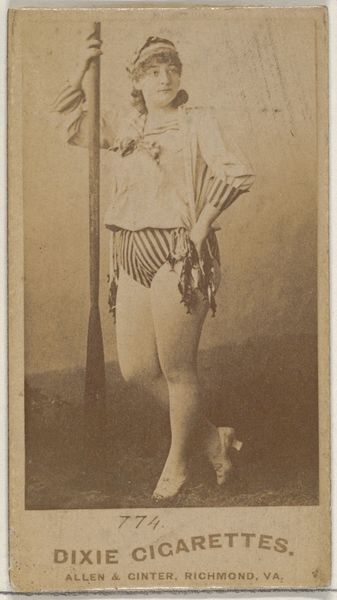 This is a photograph of Miss Varonia, part of the Actresses series by Wm. S. Kimball & Co. Notice how she delicately holds a fishing net; this simple object is laden with symbolism. Nets have long been associated with entrapment, fate, and the capturing of desires. Think of classical depictions of Venus, the goddess of love, often shown with nets, symbolizing her power to ensnare hearts. Now, consider the Christian motif of Saint Peter, the fisherman, who uses his net to gather souls for Christ. The net, therefore, becomes a tool for salvation. Yet, in other contexts, it's a symbol of trickery, or a spider's web trapping the unwary. The pose, the slightly puzzled look, the bare legs, all invite us to ponder what Miss Varonia intends to catch. Is it admiration, a role, or something more elusive? Such images tap into our collective subconscious. They resonate with deep-seated fears and desires, engaging us in a perpetual dance of interpretation and reinterpretation. This constant evolution shows us how symbols never truly die; they merely transform, resurfacing in new guises across the vast tapestry of human culture.