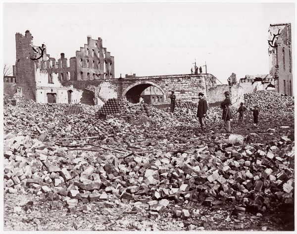 Editor: Here we have Francis Frith's "The Broken Obelisk, Karnac" from 1857, a silver print capturing the ruins. It feels quite melancholic, seeing such grand structures reduced to rubble. How do you interpret this work, especially given its historical context? Curator: What strikes me is the visual tension between the enduring architecture and its fragmentation. Frith, an Englishman documenting Egypt, participates in a long history of Western gaze upon the East. Whose narrative is centered here? Is it a lament for lost grandeur, or a celebration of British colonial reach, capturing a fallen empire? Editor: I hadn't considered the colonial aspect so explicitly. It's strange to think that the very act of documenting these ruins could be seen as an assertion of power. Curator: Exactly! And think about the visual language: the obelisk, a symbol of ancient power, is broken. How does that fragmentation mirror the fracturing of Egyptian sovereignty under colonial influence? We need to be critical about how images like this reinforce dominant power structures. Were the local people visible? Are they props, part of the scenography of "a place to conquer"? Editor: I see your point. The figures are present but don’t interact or occupy the focus. Is it also worth questioning Frith's role in perpetuating orientalist stereotypes, then? Curator: Precisely. By analyzing the gaze, the composition, and the context, we uncover layers of meaning about the artist, the subject, and the power dynamics at play during this period. Editor: It makes me rethink how photography from this era can be both a historical document and a form of cultural commentary—intentional or not. Curator: Right. And by examining the image through various critical lenses – postcolonial theory, orientalism – we challenge the surface and ask crucial questions about representation and power. It is both his eye and the British imperial vision. Editor: I am grateful that you've broadened my perception. I hadn't fully appreciated the complexities inherent in this image. Thank you for illuminating it for me!
