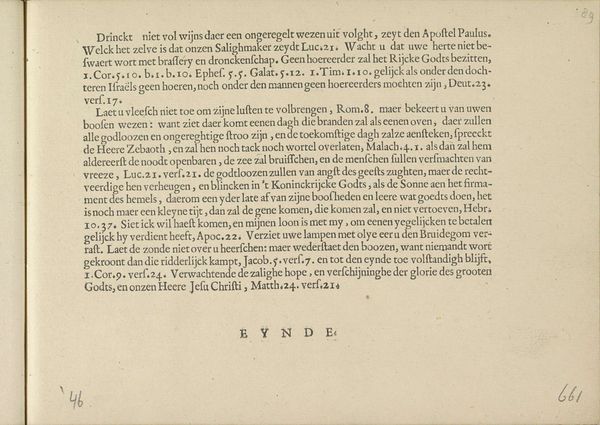 This is "Waarschuwing, pagina 1," made by Crispijn van de Passe the Younger around the 17th century. It is an etching, a warning against adultery, made during a time of strict social and religious norms in the Netherlands. The print critiques the era's perceived moral decay. In that time, marriage was regarded as a sacred institution, and transgressions were seen as threats to the social order. The text strongly condemns adultery, linking it to spiritual blindness and a path to death, rather than life. The print reflects a society grappling with questions of sin, punishment, and redemption, and uses religious doctrine to address social anxieties. The emotional weight of the piece comes from its intense moral stance, intended to provoke introspection and adherence to religious law. The artwork reinforces traditional views, presenting adultery as a grave sin with severe consequences, which shows the social norms of that time. The artwork serves as a window into the religious and moral beliefs of the 17th century. It highlights the role of art in shaping and enforcing societal values, especially concerning marriage and sexuality.