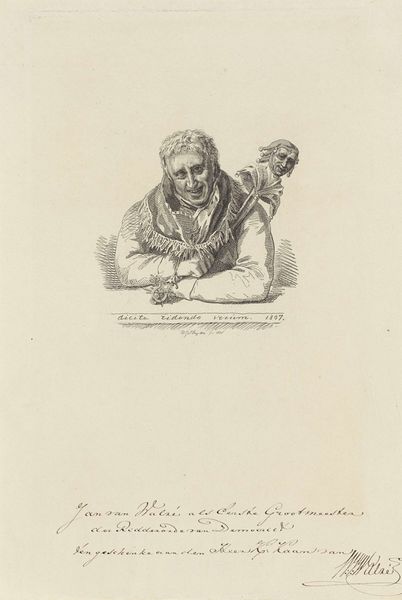 This is an etching of a seated man with a basket by Hendrikus van de Sande Bakhuyzen. Created during the early to mid-19th century, a time of significant social and economic change in the Netherlands. The image depicts a man who, from his clothing, is likely working class. His posture and the inclusion of a basket and walking stick suggest labour and travel, marking him as a rural worker, perhaps a farmer or tradesman. The era in which Bakhuyzen lived was marked by a growing awareness of social inequalities, even as traditional class structures remained firmly in place. Bakhuyzen often focused on rural landscapes and figures. His choice to represent the working class invites reflection on the dignity of labour and the lives of those often overlooked in the art of his time. "Art should reflect the world around us, not just the world of the wealthy." The artwork captures a moment of rest, yet it speaks volumes about the sitter’s daily life. It asks us to consider the stories and struggles inherent in the lives of ordinary people during a period of transformation.