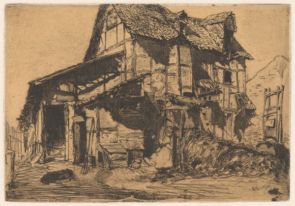 James Abbott McNeill Whistler created "The Unsafe Tenement" using etching, a printmaking technique, in the late 19th century. Whistler, an American expatriate, captured a scene reflecting the era's rapid industrialization and urbanization, which often led to overcrowded and unsanitary living conditions for the working class. This work offers a glimpse into the lives of those marginalized by progress, inviting us to consider the social costs of economic development. Notice the tenement's dilapidated state, a visual metaphor for the neglect and precariousness faced by its inhabitants. The figure of a child by the building asks us to consider the cycles of poverty and the lack of opportunity for those born into such circumstances. Whistler eschews romanticization, presenting an unvarnished view of urban poverty, prompting reflection on how society addresses inequality and the dignity of human life. This artwork connects with the historical moment and resonates with contemporary issues of housing, social justice, and the human condition.