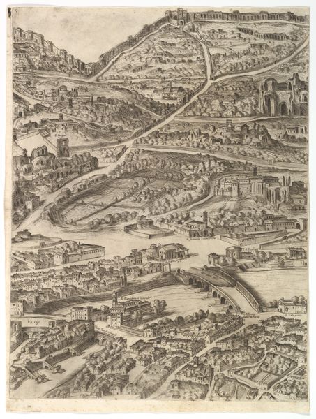 Antonio Tempesta created this section of his "Plan of the City of Rome" as an engraving sometime between 1570 and 1630. This print is not just a map, but also a window into Rome's urban and social structure. Notice how Tempesta meticulously details the city's architecture, from the grand churches to the more modest homes, all within the imposing city walls. The rigid organization of space reflects the strict social hierarchies of the time, dictated by the powerful Roman Catholic Church and the aristocratic families who controlled the city's resources. Mapping and printmaking were strategic tools for asserting power and creating a shared understanding of the city. To truly understand this print, we must consider the political climate of Counter-Reformation Rome, where the Church sought to reassert its authority through art and architecture. By studying period documents, architectural plans, and social histories, we can begin to decode the messages embedded within this seemingly straightforward depiction of the city.