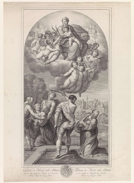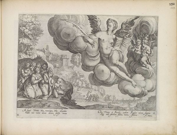 Antonio Tempesta created this engraving, "Semele's Wish," illustrating a scene from Ovid's Metamorphoses. It depicts Semele, struck down by the unveiled glory of Jupiter. Note how Jupiter sits enthroned upon a cloud accompanied by an eagle, embodying power, and Juno, attended by her peacock, symbolizing vigilance and jealousy. Semele’s gesture of shielding her eyes speaks volumes. This act echoes across art history, think of the figures averting their gaze from Medusa or the divine light, representing a primal fear and awe of the sublime. In both instances, the gesture is not just of protection but of recognition of a boundary between the mortal and the divine. Consider how the 'averted gaze' motif is not merely a visual element, but a psychological reflection of humanity's complex relationship with the sacred. This symbol, ever-evolving, continues to engage viewers, stirring deep, subconscious emotions tied to our collective memory of the divine and the forbidden.