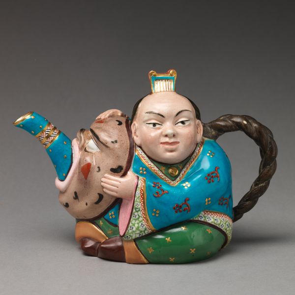 This is a porcelain Harlequin with Bagpipes made by the Meissen Porcelain Manufactory. The figure embodies the Commedia dell'Arte character, Harlequin. Emerging in 16th-century Italy, this theatrical form often featured masked characters who improvised and engaged in slapstick comedy. Harlequin, traditionally a servant, is known for his wit, agility, and patchwork costume. Here, though, he is not in rags, and is depicted wearing a refined and floral suit. This figurine reflects the popularity of Commedia dell'Arte among European aristocracy, who saw these characters as lighthearted entertainment. By creating Harlequin in porcelain, the Meissen factory transformed a figure of the working class into a delicate collectible, enjoyed by the elite. This speaks to the complex relationship between class, culture, and representation. The figure encapsulates the history of entertainment, class dynamics, and the commodification of culture.
