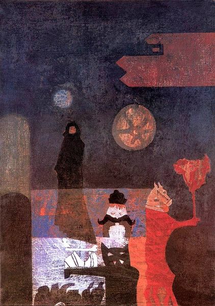 Endre Balint’s “Homesickness” is a painting that encapsulates the artist’s personal and historical sense of displacement and longing. Balint was a Hungarian Jewish artist who survived the Holocaust in hiding, and his experiences of persecution, loss, and cultural alienation profoundly shaped his artistic vision. The painting weaves together fragmented images – a ghostly figure, looming dark shapes, and symbolic objects – creating a dreamlike landscape of memory and emotion. These symbols hint at the disruption and trauma of war, while the title "Homesickness" alludes to a deeper sense of disconnection from place, identity, and belonging. "Homesickness" resonates with the universal human experience of yearning for connection and stability, especially in the face of trauma and displacement. It invites us to consider the power of art to give voice to experiences of marginalization, to challenge dominant historical narratives, and to create spaces of empathy and understanding.