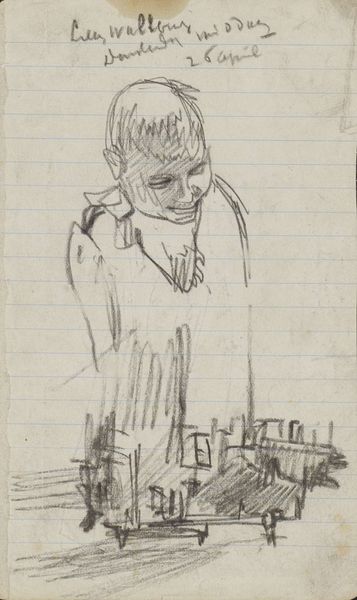 Editor: This is a quick pencil sketch, titled simply "Pierre Auguste Renoir" by Jean-Louis Forain. It's striking how few lines define Renoir's face, and yet how much character the artist captures! What echoes or resemblances do you notice when you look at this drawing? Curator: I see a convergence of intimacy and monumentality, which invites closer contemplation. Forain's image, though rendered with sparse lines, summons Renoir's presence, suggesting an intersection of personal regard and lasting artistic impact. Consider the beard. Doesn't the hatching of those lines echo the energetic brushstrokes that made Renoir famous? It is not just beard but _the idea of_ beard. How does that inform our understanding? Editor: That’s interesting; I hadn’t thought of the beard as echoing Renoir's paintings. So, is the sketch speaking not just *about* Renoir but also subtly referencing *Renoir's* artistic identity through its style? Curator: Exactly. And beyond technique, we confront a meditation on legacy itself. Note the gaze downward—thoughtful or perhaps world-weary. The angle directs the viewers inward, urging self-reflection on artistic greatness and human ephemerality. How potent can an emblem be? What feelings might this image elicit when shared? Editor: It’s fascinating to consider how much this simple portrait communicates about art, memory, and even mortality. It really does seem to distill Renoir’s entire persona. Curator: Yes, the image presents him both as the great artist and vulnerable human, demonstrating a beautiful convergence of intention, execution, and symbolic resonance.