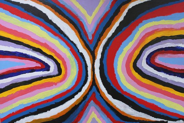 This vibrant untitled piece was created by Sol LeWitt, an artist deeply embedded in the conceptual art movement of the mid to late 20th century. LeWitt, rejecting the traditional emphasis on the artist's hand, focused on the idea behind the work, often employing others to execute his designs. Here, a series of bold, colorful lines undulate across a bright blue field, creating a sense of movement and rhythm. We might consider how these colors, and the shapes they form, play with our perception, challenging conventional notions of representation. LeWitt's own words echo this sentiment: "Conceptual artists are mystics rather than rationalists. They leap to conclusions that logic cannot reach." This artwork, through its simplicity and bold color choices, invites us into an almost playful space, reflecting a broader societal shift towards questioning established norms and embracing new forms of expression. The personal and the political become entangled in these looping lines.