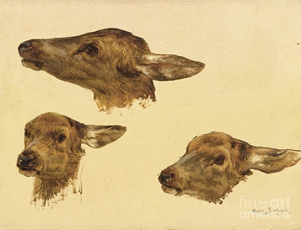James Ward, in this work, presents us with two studies of sheep’s heads. The sheep, since time immemorial, has been laden with symbolic weight. In early Christian iconography, Christ himself is often depicted as the Good Shepherd, a protector of his flock. But consider also the Golden Fleece, a symbol of wealth and power in Greek mythology, sought after by Jason and the Argonauts. Here, the sheep transcends its humble agricultural role, becoming an emblem of grand ambition and perilous quests. These depictions tap into a collective memory, where the animal embodies vulnerability, sacrifice, and even divine guidance. Ward's work engages us on a subconscious level, prompting reflection on how we project our own narratives and emotions onto these creatures. Indeed, Ward’s study, seemingly simple, carries within it a rich tapestry of cultural and psychological associations, continuing to evolve with each viewing.