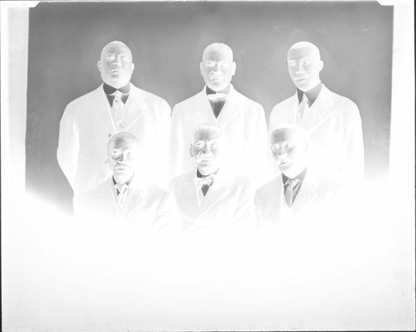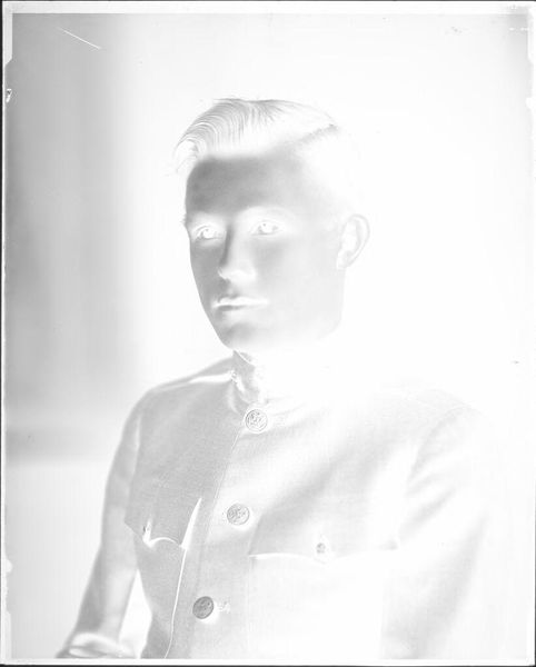 Editor: This is an untitled portrait of a couple by Hamblin Studio. It's a photographic negative, which gives it a somewhat ghostly and surreal quality. What's your take on it? Curator: It's like peering into a forgotten dream, isn't it? The stark contrast etches these figures into our minds, almost like memories struggling to surface. I wonder about their story. Were they aware of the future looking back at them with such curiosity? Editor: That's a great point. Their stoicism contrasts so much with our contemporary culture of self-expression. Curator: Exactly! And that's the beauty of it. This negative whispers tales of a different era, a different way of being. It makes you question what truly lasts, doesn't it?