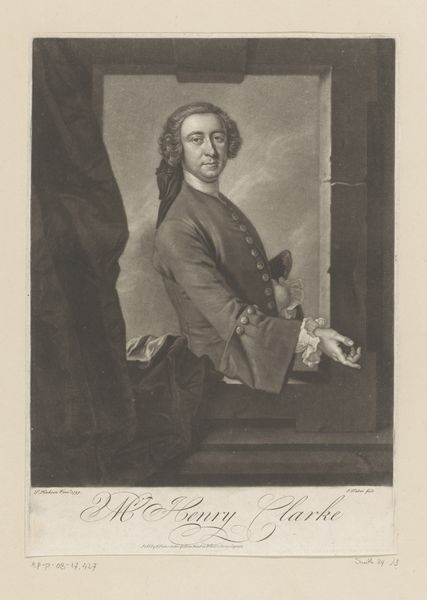 John Faber the Younger made this mezzotint print of George Graham, the renowned clockmaker, sometime in the first half of the 18th century. It's an image born from the era's fascination with both scientific precision and the burgeoning cult of the individual. Mezzotint is an intaglio printmaking process that relies on building up tone through careful burnishing and scraping of a roughened metal plate, here copper. The result is a soft, velvety texture, quite different from the stark lines of an engraving. Look closely and you’ll see how Faber used this tonal range to create subtle gradations of light and shadow, lending a lifelike quality to Graham's portrait. He’s even captured the metallic sheen of the tools Graham holds, a testament to his craft. But the print is also about the status of the artisan. By immortalizing Graham in this relatively new medium, Faber elevates clockmaking from a mere trade to a form of scientific artistry. He's not just depicting a man, but celebrating the skills and knowledge embodied in the work of his hands.