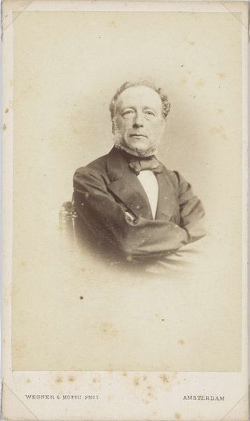 Editor: So this is Maurits Verveer’s photograph, "Portrait of A.H. Bakker Korff," created between 1881 and 1885 using a gelatin silver print technique. The man’s serious expression gives it such a weighty, historical feel. What symbols or hidden meanings do you see in this image? Curator: This photograph whispers of the rising merchant class and the embrace of artistic realism. The oval frame recalls classical portraiture, yet the photographic medium signifies modernity, doesn’t it? Note Bakker Korff's gaze – direct, unwavering. It’s a gaze that mirrors a period of increasing social mobility, the kind afforded to a man whose image would even be captured at all. Editor: That's interesting; I hadn't considered the framing as symbolic of the old meeting the new. So the image commemorates an era where photography started challenging painting as the prime mode of recognition? Curator: Precisely! But consider also the pose – rigid, formal – quite typical. And yet, within that rigidity, does there also lie a yearning for posterity, a need to etch oneself into history using these novel ways? His spectacles might also represent his role as a professional or intellectual. Does this add new perspectives? Editor: It certainly does. Seeing the eyeglasses as symbolic adds to the narrative of an individual defining himself. Curator: It seems Verveer does more than document. The photograph functions as a time capsule and perhaps a herald of the image saturated culture we occupy today. Editor: Right, and it encourages us to consider both the sitter and the artist as products of a world experiencing great change. Curator: Indeed. And that the image even persists to this day is an enduring commentary on the enduring human desire to represent ourselves.