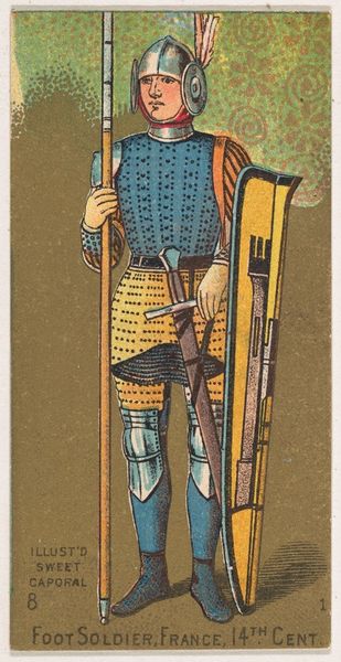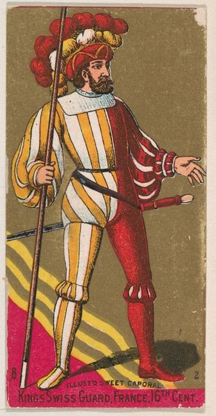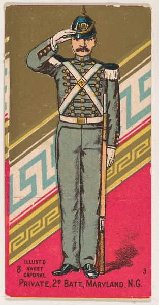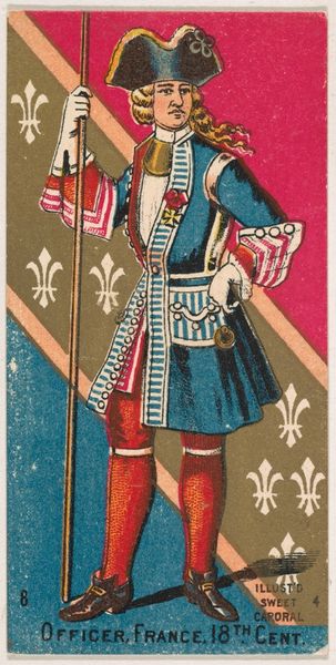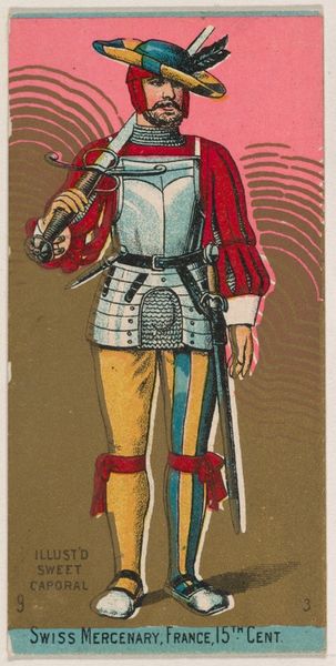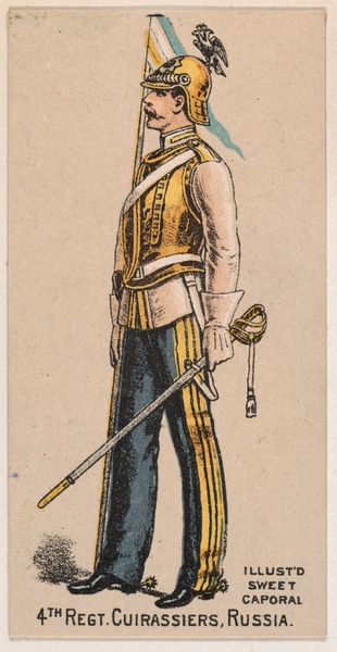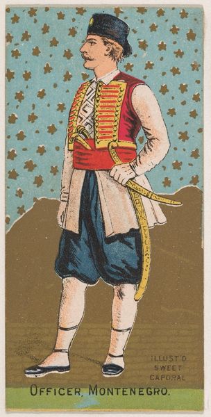 This chromolithograph, depicting a Norwegian dragoon officer, was created by the Kinney Brothers Tobacco Company, sometime between 1869 and 2011, as a promotional item for Sweet Caporal Cigarettes. These cards offer a glimpse into the cultural milieu of the late 19th century, when tobacco companies often used exotic imagery to market their products. In these series, military figures are stripped of their historical and political contexts, becoming mere objects of fascination. Consider how this card catered to fantasies of power, valor, and colonial expansion, particularly among male consumers. The Norwegian officer, with his elaborate uniform and stoic demeanor, embodies a romanticized vision of military prowess. While seemingly innocuous, these cards reflect broader societal attitudes towards nationalism, militarism, and the construction of masculine identity during the height of European imperialism. They remind us to look critically at the images and narratives we consume, and to consider the power dynamics at play in their creation and circulation.