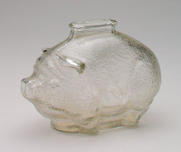 The Hazel-Atlas Glass Company produced this amber-colored "Cheshire Cat" still bank, and though undated, it likely hails from the mid-20th century in the United States. Still banks like this one became popular during a time when thrift and saving were virtues instilled early in childhood. Mass-produced, these banks reflected popular culture, with the grinning Cheshire Cat a whimsical choice that reveals the widespread influence of literature and illustration on everyday objects. The choice of glass speaks to America’s industrial capabilities and the accessibility of consumer goods. But it also reflects the ephemeral nature of childhood and the disposable culture that was emerging. By studying company records, advertisements, and social histories of consumerism, we can better understand the cultural values embedded in this seemingly simple object. The Cheshire Cat bank offers a lens through which to examine American attitudes towards money, childhood, and popular culture.