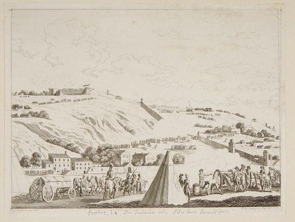 Curator: Oh, this pencil drawing feels like a whisper from another time. There’s such stillness, a hush about the landscape... melancholy, almost. Editor: That stillness might belie the historical significance embedded in this work, J.C. Dahl's "Prospekt af Kongsberg." Dating from 1788 to 1857, it captures the industrial heart of Norway at the Kongsberg Silver Mines, then a site of immense social and economic complexity. Curator: You're right, there's a layered narrative happening here. The delicate lines of the town nestle below those soft, almost yearning hills. And the light! Even rendered simply with pencil, you sense a Northern light bathing the scene. The tiny figures, look at them gathered! Are they tourists? Workers? Ghostly presences? Editor: I interpret them as representatives of the labor force, perhaps awaiting instruction. The silver mines demanded a significant workforce, drawing in people from diverse backgrounds, often under harsh conditions. Dahl, though, romanticizes; there is no sense of the political struggle inherent in such an exploitative labor arrangement. Curator: Yes, "romanticizes" is a key word. The way he frames the scene, it almost softens the stark reality of resource extraction, the mark the industrial leaves on nature… Perhaps this softening comes from that tension always buzzing just under the surface: finding beauty even within exploitation, seeking reconciliation. It makes me think about our own uneasy dance today. Editor: Exactly. By understanding the historical context, we begin to unravel the ways art can both reveal and obscure power dynamics, privilege, even systemic injustice. For whom, then, does this vista primarily perform? The Norwegian King, the mine operators, the investors abroad...? Curator: I can't help but think of light. His use of the medium and this delicate interplay of the shadow within it reminds me of poetry. You can't *quite* hold on to a solid truth. A wisp of feeling is gone just as soon as it is noticed. Perhaps like this place? This drawing invites reflection – a contemplation of echoes. Editor: And from these echoes, we find whispers. They beckon us toward greater examination of the world, yesterday and today.