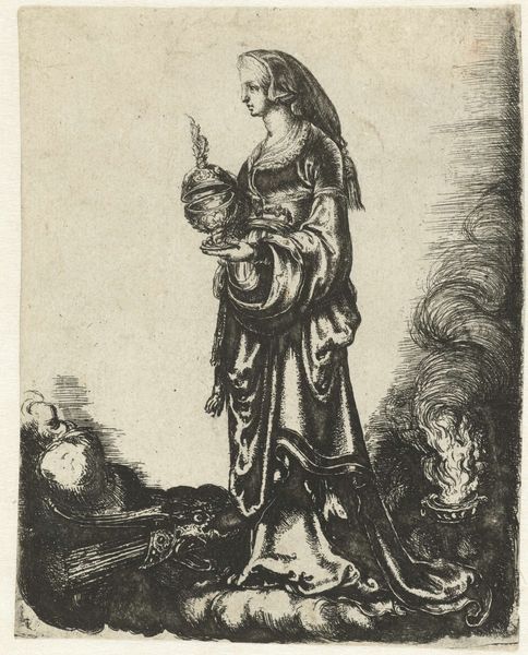 This is an anonymous print depicting Saint Fabiola of Rome as a hermit, residing at the Rijksmuseum. Note the prominent cross in the foreground, a universal symbol of Christian faith, martyrdom, and redemption, yet also a reminder of the inescapable suffering and mortality that binds humanity. The image of Saint Fabiola kneeling in prayer before a cross can be traced back through centuries of religious art, each iteration reflecting the evolving spiritual and emotional landscape of its time. Consider the ancient Roman depictions of supplication, where gestures of folded hands were made to deities, reflecting a deep-seated human need for divine intervention. Over time, this evolved into a visual language of piety and penitence. The symbolism of Saint Fabiola, the cross, evokes a powerful emotional resonance that transcends time. This reflects not only religious devotion but also the human capacity for empathy, remorse, and the enduring search for meaning in the face of hardship. The symbol's journey is a testament to its enduring power to stir the depths of the human psyche, resurfacing in countless forms throughout history.