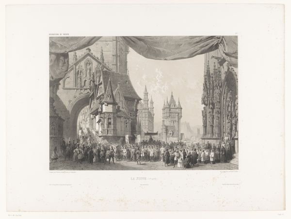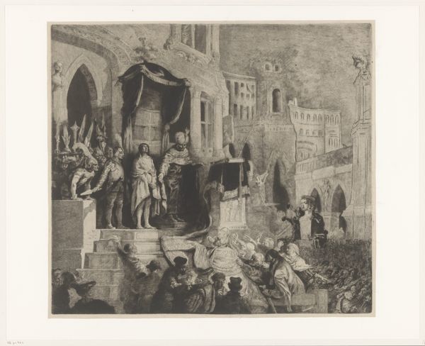 Carel Christiaan Antony Last created this print depicting a scene from the opera Le Prophète. The central figure, likely the prophet himself, extends his arms, a gesture laden with ancient meaning. This posture—arms outstretched—resonates through history, echoing the figures in prayer from the catacombs to the orans stance in early Christian art. It is a symbol of supplication, of divine connection, but also of authority and benediction. Think of the priest during mass or emperors depicted as all-powerful. Observe how it reappears in different guises, sometimes reverent, sometimes assertive, its fundamental power undiminished. Consider the psychological weight of such gestures. This symbolic language taps into our collective memory, evoking feelings of awe, submission, or even defiance. The emotional power embedded in these forms persists, engaging viewers on a subconscious level, long after the original contexts are forgotten. These symbols recur, evolve, and take on new meanings, proving their enduring relevance in the human narrative.