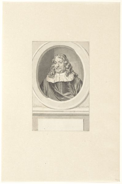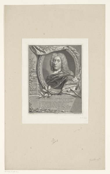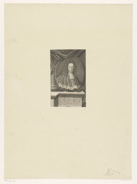 Johann Georg Puschner made this portrait of Johann Paul Wurfbain, though the exact date of its creation is currently unknown. The print demonstrates the fashion for the Baroque style during the late 17th and early 18th centuries, especially among members of the upper classes. Wurfbain is depicted with a large, curly wig and elaborate lace collar, visual markers of status at the time. The oval frame surrounded by draped fabric further elevates the subject, presenting him as a figure of importance. Created in the German territories of the Holy Roman Empire, the print reflects a society deeply structured by social rank and courtly culture. To fully understand the print, we might turn to sources such as period fashion guides or genealogical records of the Wurfbain family. These resources can provide deeper insight into the social and institutional contexts that shaped the artwork's creation and meaning.