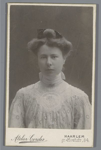 This is a photograph, "Portrait of a Woman," made by C.W. Nichols, a 19th-century photographer working in Vermont. It's not painted or sculpted, but created through a chemical process using light-sensitive materials. Photography in this era wasn't just about capturing an image; it was a complex craft. The photographer had to prepare the chemicals, coat the plates, expose the image, and develop it, all with precise timing and technique. Looking at this portrait, consider the labor involved in creating the photographic materials themselves. The glass plates, the chemicals, the paper—all required mining, manufacturing, and distribution networks, reflecting the growing industrialization of the era. The photograph's sepia tone, soft focus, and careful composition are not accidental. They reflect the aesthetic preferences of the time, but also the material limitations and possibilities of the process. This wasn't just a snapshot; it was a carefully constructed image, reflecting both the sitter's social standing and the photographer's skill. By understanding the materials and processes, we can appreciate the full meaning of this seemingly simple portrait.