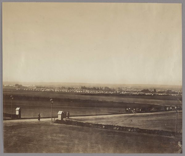 Andrew Joseph Russell created this albumen silver print, titled "Artillery Camp, City Point, Virginia," sometime during his tenure as a Civil War photographer. Russell's photograph captures the stark reality of war, yet it also subtly hints at the complex social dynamics at play. City Point, Virginia, served as a crucial supply depot and headquarters for the Union Army during the final years of the Civil War. While the photograph ostensibly depicts military order and readiness, it also evokes the absence and the looming violence that defined the lives of soldiers. Consider the unacknowledged labor of enslaved African Americans, who were often forced to construct these very camps. The photograph offers no direct representation of these individuals, yet their presence is undeniably interwoven into the scene's historical context. In its own way, the photograph invites us to reflect on who is visible in the historical record and whose contributions remain unseen.