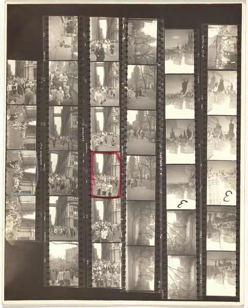 This is Robert Frank’s ‘Embarkation 1’, a photo from a film roll. It's a process laid bare, a series of moments strung together. Frank's work is like a painter's sketchbook—raw, immediate. You see the grain, the sprocket holes, the uneven exposures. It’s not about hiding the process, but revealing it. I am drawn to the physicality of this piece; the texture of the film itself, the high contrast of the monochrome images. It’s a collection of light and shadow. Look at the fifth row, the first frame. The exposure, the way the light flares... it’s a moment of pure photography, a kind of accidental beauty. Frank reminds me a lot of Garry Winogrand, who was also invested in the street. Ultimately, photography is about bearing witness, about capturing the fleeting moments that make up our lives. It’s about embracing the imperfections, the accidents, and the ambiguities that make art so compelling.