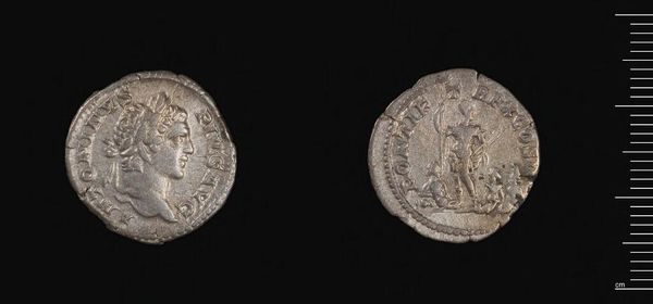 Curator: Here we have a Denarius of Maximinus I Thrax, held in the collections of the Harvard Art Museums. Editor: It looks like something you'd find glinting in the dirt, feels weighty with history, you know? Curator: Indeed. The Denarius, as a symbol, represents so much—power, trade, and the very fabric of Roman society, all encapsulated in this small metal disc. Editor: I imagine the profile here, Maximinus himself, wanted to project strength, but all I see is the weight of leadership etched into that face. Curator: Precisely. Coins like this served as propaganda, projecting the emperor’s desired image and messages throughout the empire. Editor: Makes you wonder what images we’re minting today that'll resonate in centuries to come. Curator: It offers a potent reminder: symbols endure, and their meanings evolve across time. Editor: So true; art speaks to us always, only the dialect shifts.