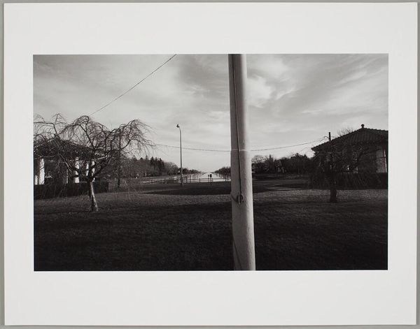 Editor: So this is Lawrence McFarland's "Untitled (marsh)," a gelatin silver print. It feels both bleak and beautiful, like a landscape holding its breath before a storm. What do you see in this piece? Curator: Ah, yes! It whispers of quiet observation, doesn’t it? The silver gelatin process gives it a tactile depth, pulling you into that brooding sky. For me, it’s a study in liminal spaces, the edge between land and sky, darkness and light. Editor: Liminal spaces? Curator: Transitional, on the threshold. Notice how the horizon line nearly bisects the image, dividing the tangible earth from the ethereal heavens. Do you feel a sense of anticipation, a waiting for something to shift? Editor: Absolutely! It makes me think about how much we project onto landscapes, these silent witnesses. Thanks, I'm starting to feel it now. Curator: Precisely! We bring ourselves to these spaces, and photography captures that exchange. Food for thought, eh?