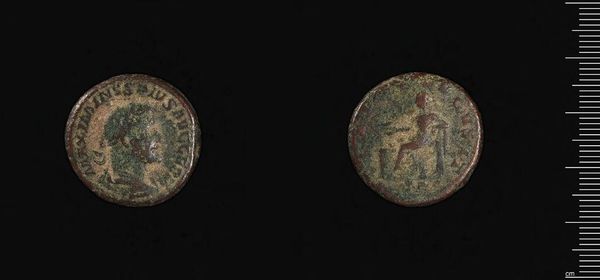 Editor: Here we have a Follis of Constantine I, made by Constantine I himself. It looks like a bronze coin, and it feels weighty with history. I wonder, what can you tell me about its place in society? Curator: These coins were more than just currency; they were powerful tools of propaganda. The image of Constantine projected authority and divine favor, shaping public perception. The coin’s circulation literally spread the emperor's image and message throughout the empire. Editor: So, it was an early form of mass media? Curator: Precisely! Each coin served as a miniature billboard, reinforcing Constantine's power and legitimacy in the eyes of his subjects. It's fascinating to consider how art played such a direct role in shaping political landscapes. Editor: That's a totally different way of thinking about a coin. Thanks! Curator: My pleasure. It’s a reminder that art is always embedded in a network of social and political forces.