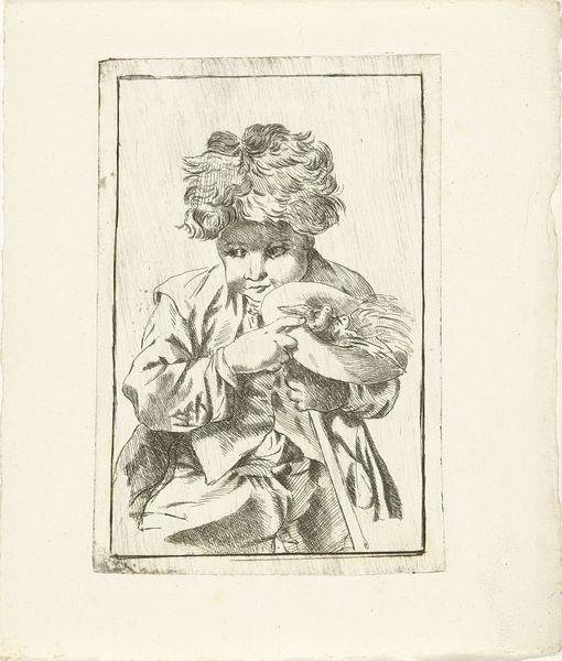 Editor: Jean-François Millet's etching, "Peasants Going to Work" from 1863. It feels incredibly raw and intimate, almost like a whispered secret on paper. What strikes you about it? Curator: Oh, "Peasants Going to Work"! For me, this little etching is like a concentrated dose of Millet’s heart. It is the embodiment of back-breaking labour. See how the head droops? The burden seems to press right through the page. It's not idealized beauty, it’s something grittier. What feelings surface when *you* look? Does it tug at any thread in *your* emotional tapestry? Editor: I get this deep sense of empathy, of understanding the weight these people carry. But it's also a bit…melancholy? Is it about honoring their lives or critiquing the social system? Curator: Both, perhaps? Millet wasn’t afraid to mix his metaphors or muddle his missions. But his respect for the dignity of labour—the human spirit itself—shines. This is where Millet takes everyday toil, dips it in emotion, and etches something everlasting onto our collective psyche. Do you see hints of social commentary threaded through the artistic fabric here, or am I reading too much into things? Editor: No, I think that’s a valid reading! Seeing how the facial features are mostly obscured really suggests that he isn’t trying to make them individualized figures. It broadens the meaning to all workers. Curator: Exactly! It becomes Everyman, Everywoman—the shared experience of toil etched for eternity. Thinking about Millet’s place, I am always reminded of a small, maybe cracked, mirror reflecting grand things! He manages it all here, with lines scratched into metal. Extraordinary, don’t you think? Editor: It truly is. I'll definitely be pondering those emotional threads for a while!