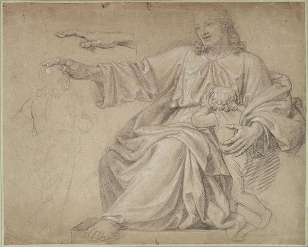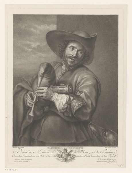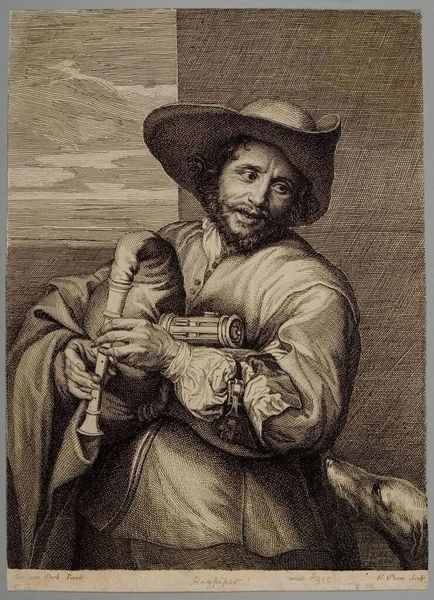 Editor: Philippe Mercier's "Pierrot Catching a Fly," painted sometime between 1740 and 1750, shows a man, presumably Pierrot, intently focused on something in his hands. I'm struck by the intimacy of the scene and Pierrot’s expression; he seems both amused and deeply focused. What's your take on this curious moment? Curator: Ah, Mercier's Pierrot! It’s funny, isn't it, how something so mundane can feel so captivating? He transforms a fleeting moment, an almost imperceptible action, into a quiet meditation on observation. Pierrot isn't just catching a fly; he’s catching a piece of time itself. It reminds me a bit of those Renaissance paintings of saints with flies, those little reminders of mortality buzzing about. Editor: Mortality? I hadn't thought of that, but I see what you mean. Is it common to paint seemingly insignificant activities as more symbolic than initially meets the eye? Curator: Often. Think about still life, and the ways artists like Chardin turned domestic simplicity into poignant poetry. Mercier is doing something similar here, but with a playful theatrical twist. And isn't that what Pierrot always embodies – the joy, sadness, simplicity, and profound depth all rolled into one, masked figure? He makes us stop and question the narrative. Editor: That's a great point, given Pierrot's role in theatre, representing this sort of complex duality. This reframes the mundane into something larger. Curator: Precisely. And that's what I think makes this piece so compelling. It's a mirror reflecting the absurdity and the beauty of existence itself in such an unassuming way. Art at its finest isn’t just about depicting reality but interpreting the meaning beyond it. Editor: Wow. I'll certainly never look at swatting a fly the same way again! I appreciate this newfound perception.