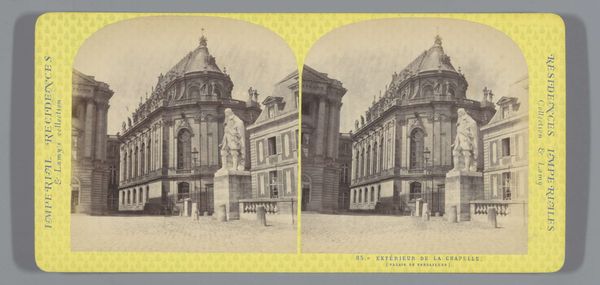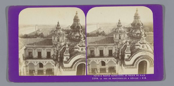 Jean Andrieu's stereoscopic photograph captures the exterior of the Convento de las Salesas Reales in Madrid, likely in the mid-19th century. The image, designed for viewing with a stereoscope, offers a doubled perspective of the baroque facade, complete with ornate gates and stone carvings. This convent, built under royal patronage, embodies the close relationship between the Spanish monarchy and the Catholic Church. Institutions like the Church were central to the social fabric of the time, shaping everything from education to social welfare. Andrieu's photograph, while seemingly a straightforward architectural study, invites us to consider how these buildings functioned as powerful symbols of religious and political authority. To fully understand its significance, we might delve into the archives of the convent itself, examining records of its benefactors, its rules, and its role in the community. Only through such investigation can we hope to grasp the full social and institutional context of this compelling image.