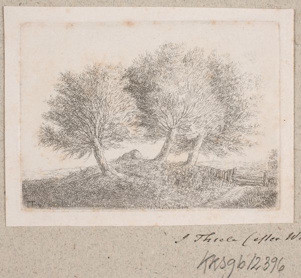 This delicate etching by Vilhelm Kyhn presents us with a serene forest edge; made with etching, it captures a moment of quiet observation. Note how the trees, rendered with meticulous detail, dominate the composition, evoking a sense of nature's enduring presence. The motif of the forest carries echoes from antiquity, representing a space of mystery, refuge, and transformation. Think of the forests in ancient Greek myths or the enchanted woods in medieval tales. This symbol appears throughout art history. Consider the Romantics' fascination with untamed nature, or even further back, the sacred groves of ancient cultures. Kyhn subtly evokes a yearning for a simpler, more harmonious existence, reflecting a deep-seated longing that resonates within our collective memory. The forest edge is more than just trees; it's a threshold, a liminal space that stirs profound emotional depths, inviting us to reflect on our relationship with the natural world. It embodies the perpetual dance between culture and nature.