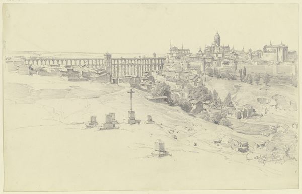 Joseph Pennell made this etching of Rouen from Bon Secours sometime between 1881 and 1926, a flurry of lines brought together to capture a place. There’s an energy to his touch that feels so immediate, like he’s wrestling with the scene before him. Looking at the piece, you can almost feel the scratch of the needle against the plate, each line a tiny decision, a response to the world. It's mostly monochromatic, but the depth comes from the density and direction of the lines. Notice how the dense, dark strokes create the hillside on the left, while the lighter, more scattered marks define the sky. It's like he's building the image from the ground up, letting the process guide him. Think of Piranesi’s architectural prints, but more intimate and personal, a testament to the enduring allure of process and the conversation between artists across time.