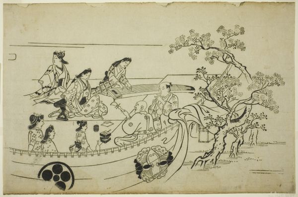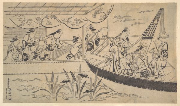 Curator: Look at this intriguing ink-on-paper work, "Catching the Ferry," by Kō Sūkoku, a Japanese artist who lived from 1730 to 1804. Editor: It evokes such a serene, almost melancholic feeling. The soft gradations of ink wash give it a dreamlike quality. Curator: Absolutely, and consider the ferry itself. Ferries have long held symbolic weight in Japanese culture, representing transitions, journeys, and the crossing of boundaries, both physical and metaphorical. Editor: It makes me think about marginalized communities' reliance on public transit. There's something about the shared journey, the collective experience of moving from one place to another, that speaks to social inequalities. Curator: I agree, and the almost monochromatic palette adds to the sense of timelessness. It’s as though Sūkoku is inviting us to reflect on the enduring human experience of travel and transition. Editor: Indeed, even the landscape seems to hold its breath, poised between departure and arrival. It's a quiet commentary on the continuous movement of people and the stories they carry.