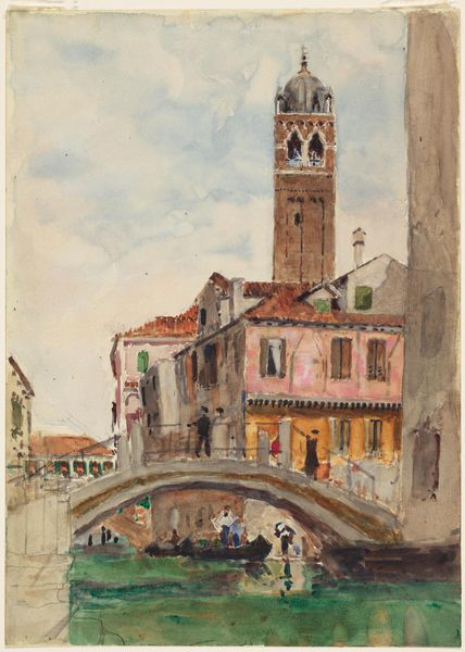 Editor: This watercolor depicts the Basilica di Sant'Andrea in Maderno, Italy, by Denman Waldo Ross. The soft washes give it an ethereal, dreamlike quality. What can you tell me about this piece? Curator: Notice how the basilica, a symbol of religious and social power, is softened, almost fading into the landscape. Is Ross subtly questioning these traditional hierarchies? Perhaps he's inviting us to consider the individual's place within these imposing structures. Editor: That's a fascinating perspective. I hadn't considered the Basilica as a symbol of power in that way. Curator: Think about the basilica’s role historically: shaping community, dictating norms. Ross’s rendering, by dematerializing it, perhaps opens up space for alternative interpretations. Editor: So, by softening the image, he's challenging us to rethink the power structures it represents? Curator: Precisely. It makes me wonder about the role of art in questioning established norms. Editor: I'll definitely look at art with a more critical eye now. Thank you.