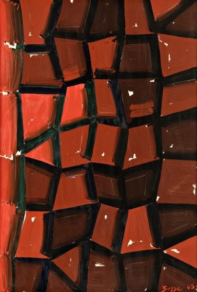 Curator: Akkitham Narayanan's Untitled abstract piece immediately strikes me as a study in contrasting forces, almost confrontational. Editor: Confrontational, yes. The acrylic paint practically screams from the canvas, doesn’t it? You can almost feel the layering, the conscious application. But confrontational within a rigidly controlled structure of geometric forms. How do you read the social or artistic implications of the artist creating in this manner? Curator: Considering the prevailing trends and sociopolitical contexts within which modernism, particularly abstract expressionism, was produced, such formal approaches challenged institutional norms around material production and artisanal labor. Narayanan’s use of bold geometries—triangles, rectangles—imposes order on what might otherwise become a chaotic, emotionally driven expression. Editor: Exactly. And the palette? It’s far from accidental. The juxtaposition of reds, blacks and whites is carefully considered to highlight material and stylistic contrast. But what societal narratives do you think the artist aimed to dismantle by showcasing process as form? Curator: Well, art galleries often placed emphasis on refined imagery while obscuring the materiality that made artworks possible. Artists that revealed layering, paint types, and overall construction challenged notions of art as exclusively about flawless outcomes. With each layer visible in a piece, it asks us to engage with the history and labor of artistic production in a radical, forthright manner. Editor: But, labor towards what end? I find it difficult to interpret overt sociopolitical meaning given the abstraction. While abstraction might subvert conventional imagery, the museum and its patrons have shown a history of readily embracing even formally revolutionary styles. Has it effectively impacted society, or did the gesture get absorbed by institutional practice? Curator: An important question. Its reception demonstrates the complex interplay between radical aesthetic statements and co-option, ultimately transforming institutional expectations around acceptable forms for art, its meaning making. The dialogue extends beyond pure abstraction to encompass access and ownership, echoing concerns that are deeply embedded in global discourse to this day. Editor: An evolving interplay indeed. It began by shifting artistic dialogues about medium and purpose, only to then get picked up and carried forward within society's larger examination of creative freedoms and production in galleries, museums, and everyday art appreciation. Curator: Agreed, what starts as the artist’s dialogue is carried through art institutions for collective enrichment of cultural life as a whole.