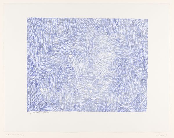 Editor: This is Harold Cohen's "First Folio A," created with plotter drawing. The looping lines and subtle grid give it a mysterious, almost map-like quality. What interpretations do you find compelling here? Curator: I'm drawn to how this work challenges authorship. Cohen programmed a computer to create art, questioning the artist's role in creation. How does this impact our understanding of artistic intention and value? Editor: So, it's about the blurred lines between human creativity and technology? Curator: Precisely. It speaks to broader anxieties about technology displacing human labor, particularly within creative fields. Does seeing it in this light change your initial impression? Editor: Definitely. I'm now considering how AI might reshape artistic expression and our relationship with art itself. Thanks! Curator: Indeed. It prompts us to question power dynamics embedded in technology and art.
