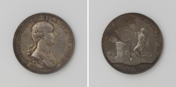 This silver medal, commemorating the Peace of the Pyrenees, was crafted by Jean Warin. The coin's circular form encloses two distinct images, each meticulously rendered with contrasting textures and depths. On one side, Cardinal Mazarin is depicted in profile. The artist uses the circular frame as a structural device to contain the portrait and the surrounding inscription. The opposite side shows an anchor, set in a marine landscape that emphasizes stability. The anchor acts as a visual metaphor, suggesting a resolution. Warin exploits the reflective properties of the silver medium to amplify the coin's symbolic content. The contrasting textures, and the relationship between form and symbol, not only reflect the specific historical event but also invite us to consider the broader implications of peace. Meaning here arises not just from the imagery but from the material properties and formal arrangement.