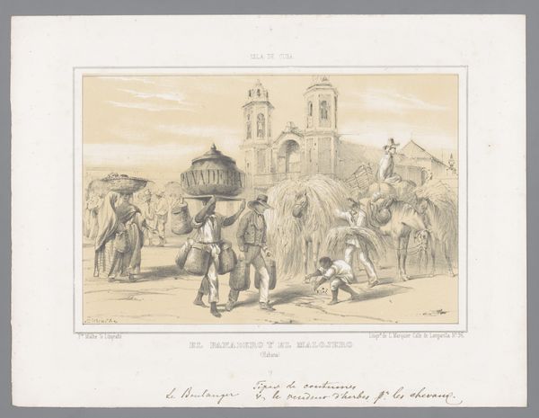 Frédéric Mialhe's "Koningsdag te Havana" captures a vibrant street scene with a riot of activity. Executed in monochromatic tones, the lithograph presents a dynamic array of shapes and forms which draws us into the heart of a bustling celebration. The composition is structured around a central gathering of figures, with the surrounding architecture providing a contrasting backdrop of geometric order. Mialhe uses line and shading to create depth, the effect of which emphasizes the figures' movements. The figures themselves, caught in various states of dance and revelry, embody a sense of liberation and cultural expression. In semiotic terms, the clothing, gestures, and interactions serve as signs, communicating themes of identity, community, and resistance against the backdrop of colonial Cuba. The image does not offer a singular, stable meaning but instead encourages us to consider the complex interplay of social dynamics. Mialhe's calculated arrangement invites ongoing interpretation, emphasizing that art's significance is continually negotiated and reshaped through cultural discourse.