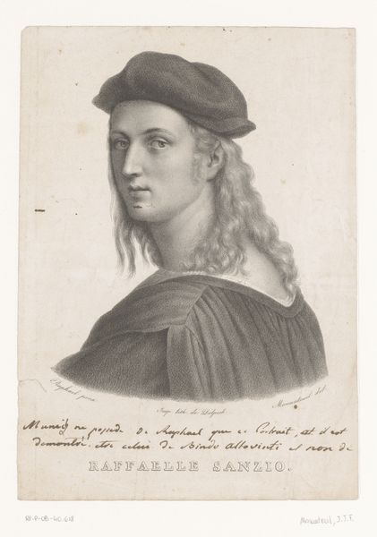 Frans Lauwers created this print, titled "Portret van Rafaël," using etching. Lauwers, born in Belgium in 1854, produced this portrait amidst a revival of interest in Renaissance art, as artists looked to the past for inspiration and to create cultural and national identities. The artwork is based on the Italian High Renaissance painter and architect Raphael. This etching embodies both the reverence and the transformation inherent in portraiture across eras. It captures Raphael's likeness and also reflects Lauwers' interpretation of his artistic legacy. The choice of Raphael as a subject underscores the ongoing dialogue between artists and their predecessors. It invites contemplation on how artistic greatness is perceived, reinterpreted, and immortalized through different hands and times. As you reflect on this piece, consider how it bridges centuries. What does it mean to revisit and reimagine artistic giants of the past?
