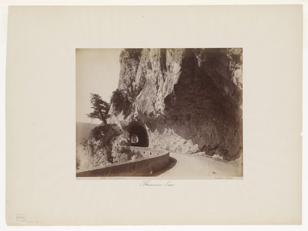 Editor: What a striking image. I'm immediately drawn to the almost precarious placement of those tiny figures along the cliff edges. It evokes such a sense of scale, doesn't it? Curator: It does indeed. We're looking at "Steile rotswand aan zee met figuren" – or "Steep Rocky Coast at Sea with Figures" – an engraving by Eugène Cicéri dating from 1854, now in the Rijksmuseum collection. And it speaks volumes about 19th-century printmaking. Editor: Tell me more. What's compelling to you about its creation? Curator: Well, consider the technical skill involved. An engraving like this demanded meticulous work. Each line, each shade, has been physically etched into the plate, an incredible testament to labor. The consumption of such images would have relied entirely on the reproducibility that such engraving processes provided. Editor: Absolutely. And that reproducibility meant it could circulate widely, shaping perceptions of landscape and travel. You can imagine the public, perhaps unable to visit such places, gaining access to them through imagery like this. Curator: Exactly! Romanticism frequently idealized landscapes as sublime and powerful. It would be distributed across Europe and back here at the Rijksmuseum; it speaks volumes about how we classify and categorize landscapes, art, and our shared experiences across the land. Editor: I agree. One almost feels a sense of the burgeoning tourism industry as well, the very fact of those figures being there, observing the scene from a carefully constructed viewpoint. Curator: And of course, it reinforces a particular socio-political view. Nature as something to be surveyed, dominated, experienced. It's hardly a neutral act, is it, the creation and distribution of an image like this. Editor: Not at all. It's fascinating how a seemingly straightforward landscape can reveal so much about the culture that produced it, from the labor to create the engraving to its impact on people accessing places they wouldn't get to access on their own. Curator: Indeed. It’s about peeling back the layers, revealing the social fabric woven into even the simplest scenes of nature.