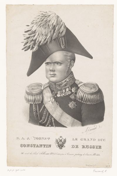 Editor: This is a portrait of Alexander I, Tsar of Russia, created in 1804 by Antoine Achille Bourgeois de la Richardière. It's an engraving, and I find myself wondering about the relationship between this medium and the sitter's powerful presence. How does the choice of engraving influence the way we understand Alexander’s authority? Curator: It's a sharp observation to consider the engraving itself. Engravings like this served a very specific purpose in disseminating power. The process, requiring skilled labor and specialized tools, turns representation into a commodity. Consider, too, how engravings democratized portraiture, moving it beyond the realm of painted commissions accessible only to the elite. How might this accessibility have shaped public perception of Alexander I? Editor: That’s fascinating. I hadn’t considered the idea of democratization through reproduction. Does the inherent "flatness" of the engraving medium affect the perception of the Tsar's character, compared to, say, a more textured painting? Curator: Absolutely. The lack of color and painterly brushstrokes removes a certain level of subjective interpretation, arguably presenting a more "objective" likeness. Yet, the engraver still has significant agency. Think about the lines, the shading - these are all deliberate choices that construct a specific image. Could we say that the act of engraving, of *multiplying* this image, subtly reinforces the idea of an absolute, unshakeable power? Editor: It's like the image itself is a form of propaganda, readily available and consistently portraying a certain image. Curator: Precisely! And it's not just about aesthetics; it's about the material conditions of artistic production shaping cultural perception and solidifying political narratives. So much meaning resides not just in the image, but in how that image was made, disseminated, and consumed. Editor: That shifts my perspective entirely. Thank you, that's really insightful! Curator: My pleasure. Thinking about art through the lens of its creation, its very materiality, offers us such a rich understanding of history and power.