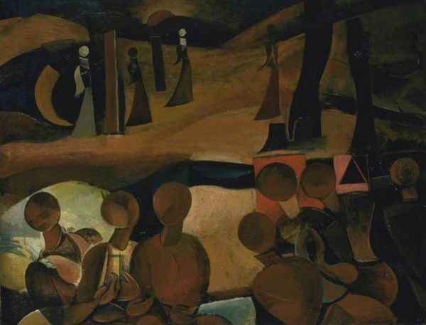 Godfrey Blow's "Visions of a New World" is a painting that almost feels like a dream, with the layering of marks building a kind of hazy reality. Look at how the paint is applied – small dabs and strokes that create texture and depth. It's like Blow is building this world from the ground up, one little piece at a time. I particularly like the way he handles the trees; they're not just shapes, but these living, breathing things with their own personalities. The color palette is muted and earthy, with a touch of blue in the background that creates a sense of distance and mystery. The texture of the paint invites you to come closer and examine every detail, yet the haziness prevents any firm conclusion. It reminds me a little of the early landscapes of Marsden Hartley, but with a slightly more personal touch. It shows you how art can be a journey of discovery, a way of seeing and feeling the world in all its complexity.