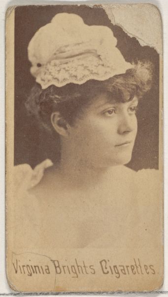 This is a carte-de-visite of Marie Jausen from the Actors and Actresses series, produced by Goodwin & Company of New York, around the late 19th century. These cards were originally collected by theatre enthusiasts as memorabilia, but soon became a marketing tool, included in cigarette packs. The card captures Jausen in costume. She is wearing a lace bonnet with a serious but gentle expression. The portrait is in sepia tone, which was common for the time period. These cards reflect the burgeoning celebrity culture of the late 19th century when actors and actresses became public figures whose images were widely circulated. It also reveals the rise of consumer culture and the increasing use of advertising to promote products. For historians, these cigarette cards are valuable primary sources that provide insights into the cultural and social history of the late 19th century. By studying them, we can better understand the role of celebrity, advertising, and popular culture in shaping society.