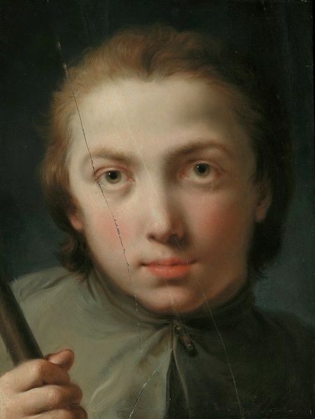 Editor: This is "The Flute Player" by Abraham Bloemaert, painted in 1621, using oil. There’s a kind of casual elegance to it. What strikes you most when you look at it? Curator: What interests me is the overt display of materials and the construction of identity through them. Consider the act of painting itself: the layering of oil paints, a costly medium at the time, used to depict the subject's clothing. The choice of such a theatrical hat, for instance – it speaks volumes about constructing an image. Editor: Right, the hat *is* pretty attention-grabbing! The feathery plumes especially. So, are you saying the artist is using these materials to comment on societal performance? Curator: Precisely. And beyond the painting itself, let's consider the wooden flute. It isn't just a musical instrument; it's an object produced and consumed, embodying labor and status. Who made the flute? Who could afford to learn to play? Editor: I hadn’t thought about it that way, focusing on the labour and economics behind the image. Curator: Bloemaert is showcasing the materials that allow this scene, this very performance, to exist. He almost lays bare the means of artistic and social production. Editor: It's fascinating to think about it in terms of material production and consumption, giving the piece a totally new layer of significance! Curator: Indeed. Shifting the focus from mere aesthetics allows us to engage more deeply with the social fabric of the time.
